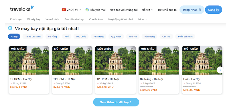 Hiện nay, thay vì đến trực tiếp phòng vé như trước, nhiều hành khách lựa chọn đặt vé trực tuyến thông qua các nền tảng du lịch uy tín. Một trong những cái tên nổi bật được nhiều người tin dùng chính là Traveloka. Với hệ thống tìm kiếm thông minh và nhiều chương trình ưu đãi hấp dẫn, Traveloka giúp việc đặt vé máy bay trở nên đơn giản, nhanh chóng và tiết kiệm hơn bao giờ hết.