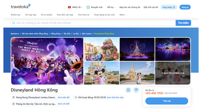 Để chuyến khám phá thế giới cổ tích diễn ra suôn sẻ, việc chuẩn bị vé tham quan và lịch trình từ sớm là điều rất quan trọng, đặc biệt trong mùa cao điểm du lịch. Thông qua Traveloka, du khách có thể dễ dàng tra cứu thông tin, xem chi tiết các gói vé Disneyland Paris và Hong Kong Disneyland, kèm theo hình ảnh thực tế và đánh giá từ những người đã trải nghiệm trước đó. Nhờ đó, bạn có thể chủ động lựa chọn thời gian tham quan phù hợp và tối ưu kế hoạch di chuyển của mình.